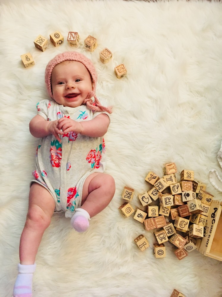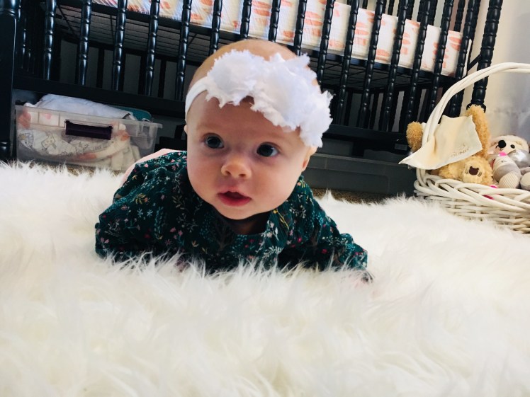 She’s growing so fast and before we know it she’ll be crawling around. She’s so good with her tummy time now.