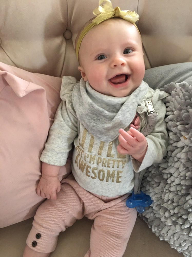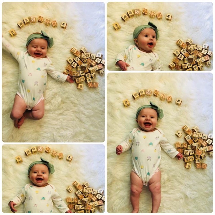 Happy 5 months Aria! It was such a delight being there with you right before your 5 month birthday! I absolutely loved to change your diaper and clothes as you seem happiest laying on your changing table! And those few mornings I was able to rescue you in the morning from the prison of your crib …….your eyes just light up when you see people. Your personality is forming and I can see you’re a people person like your Grammy! We had fun, getting selfies and doing razzberries together! Can’t wait to see how much you’ll grow in these next few months!