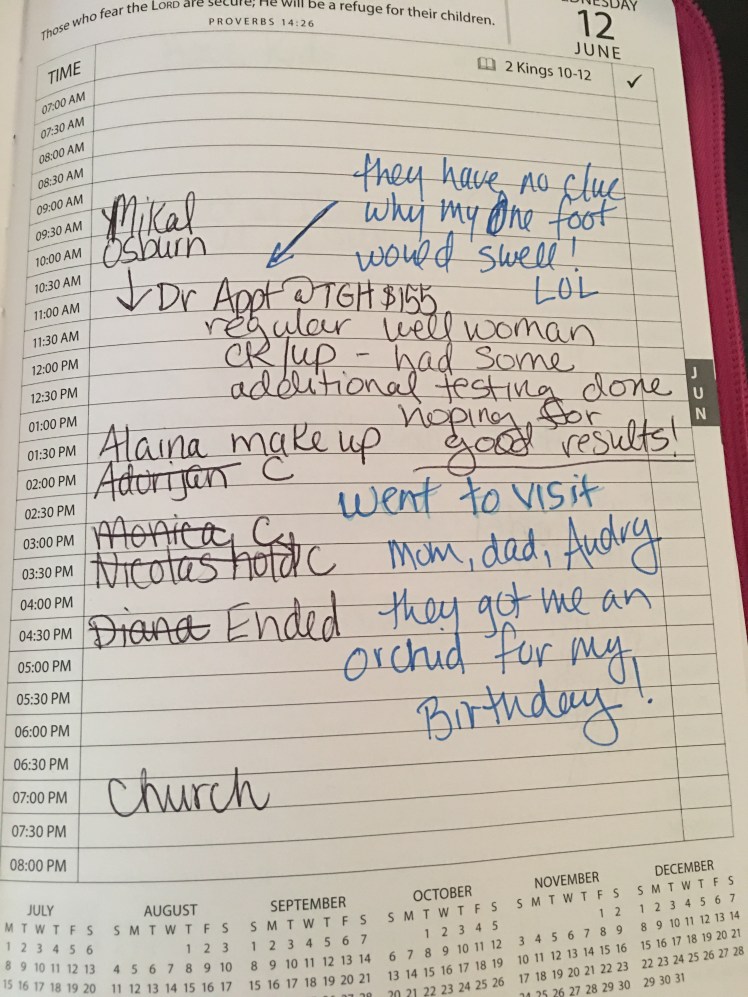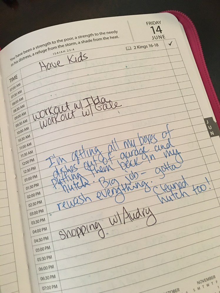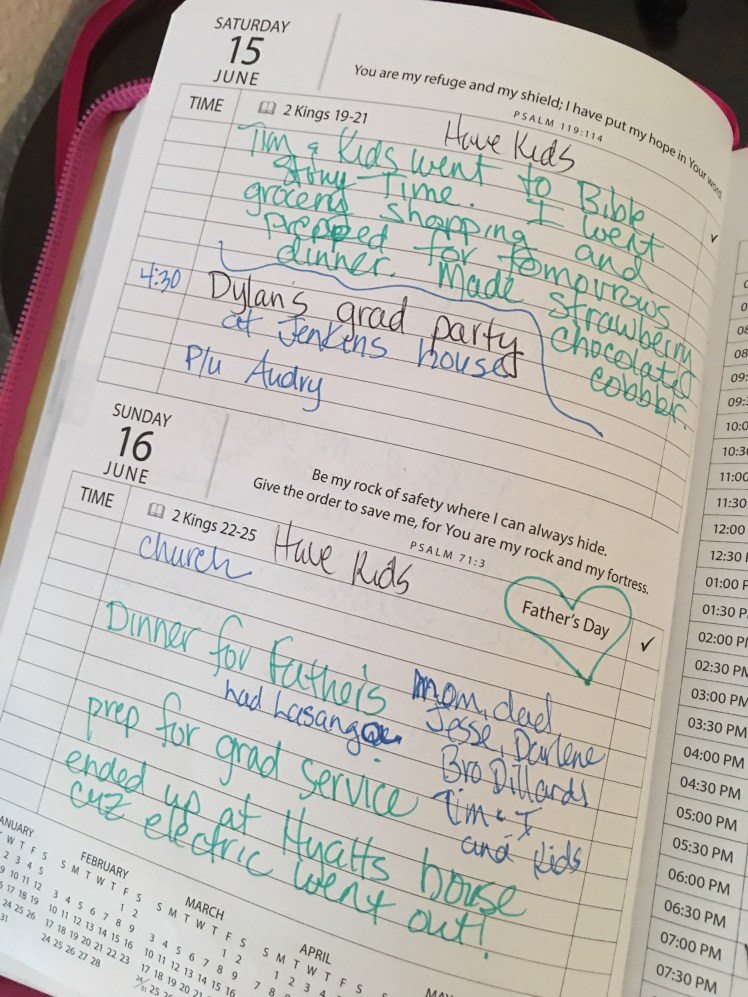 Hello people. In the middle of June now. Seems life is just happening, nothing too exciting going on. Lol! So I’m gonna show 2 weeks worth of my calendar. That’s a good way to get caught up! Ha