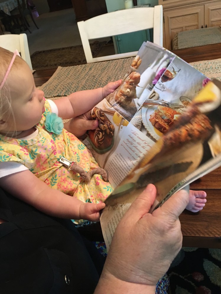 Recently I was blessed with a visit from my grand baby, Aria and my beautiful daughter Andria. Ari just turned 7 months and she is totally into tasting everything. I mean everything. I laughed at her often as anything that was put into her hands went to her mouth, even her own toes! Haha! This is how she is exploring her world, through her tastebuds. She didn’t even seem daunted by the different flavors of paper,