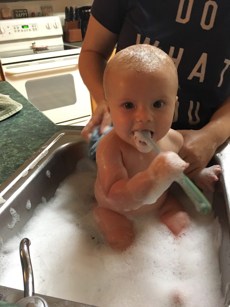 All were equally desired and eaten with enthusiasm! It brought back memories of her mom being the same way. I could never let Andria see the bottom of the bowl I was feeding her from, or she’d throw a fit because she knew she was having that last bite! Ari seems just as enchanted with eating as Andria was and dare I say it, still is! (Hope she don’t kill me for saying so! Lol!)
