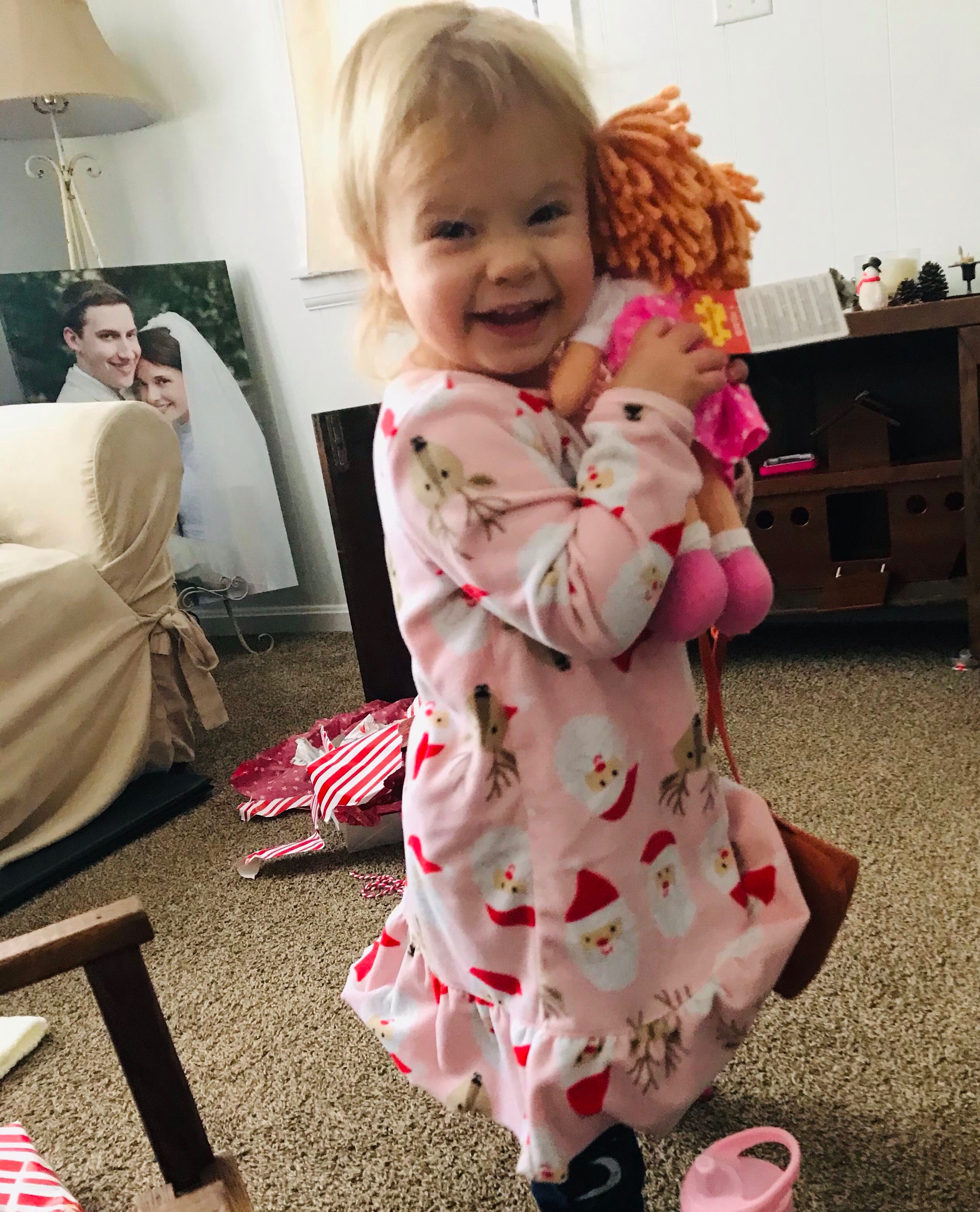 Christmas morning with the doll I sent her!