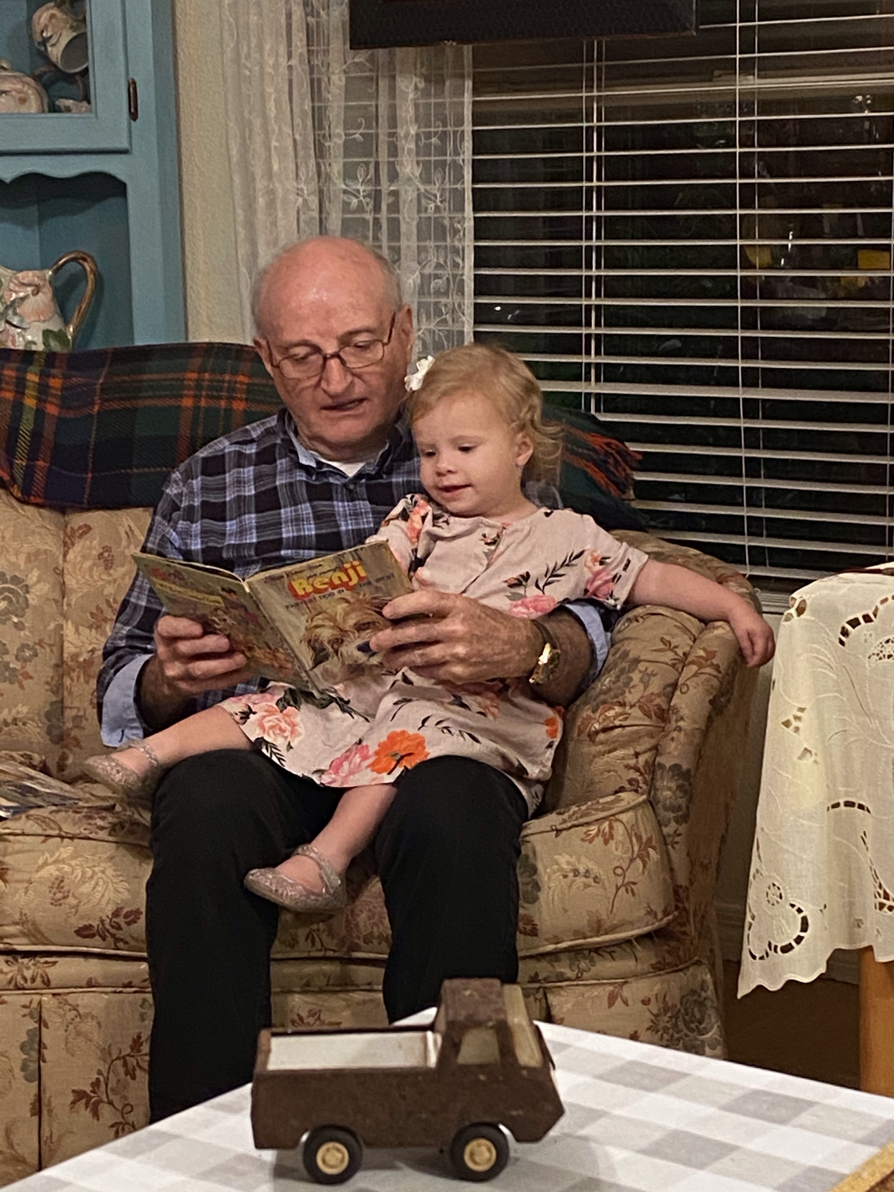 Talking with her great papa. It doesn’t matter if you don’t understand her. She is gonna talk!